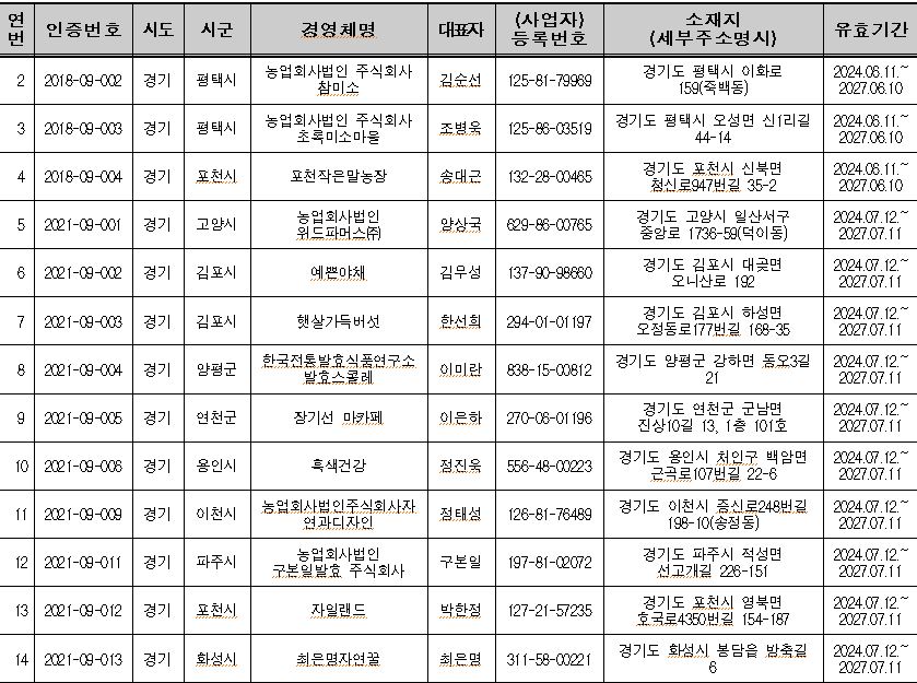 경기도 6차산업 인증자현황